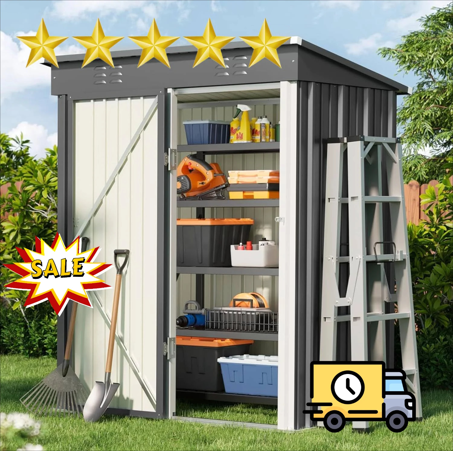 2025 NEW 5' x 3' Outdoor Storage Shed Clearance, Metal Outdoor Storage Cabinet with Single Lockable Door, Waterproof Tool Shed
