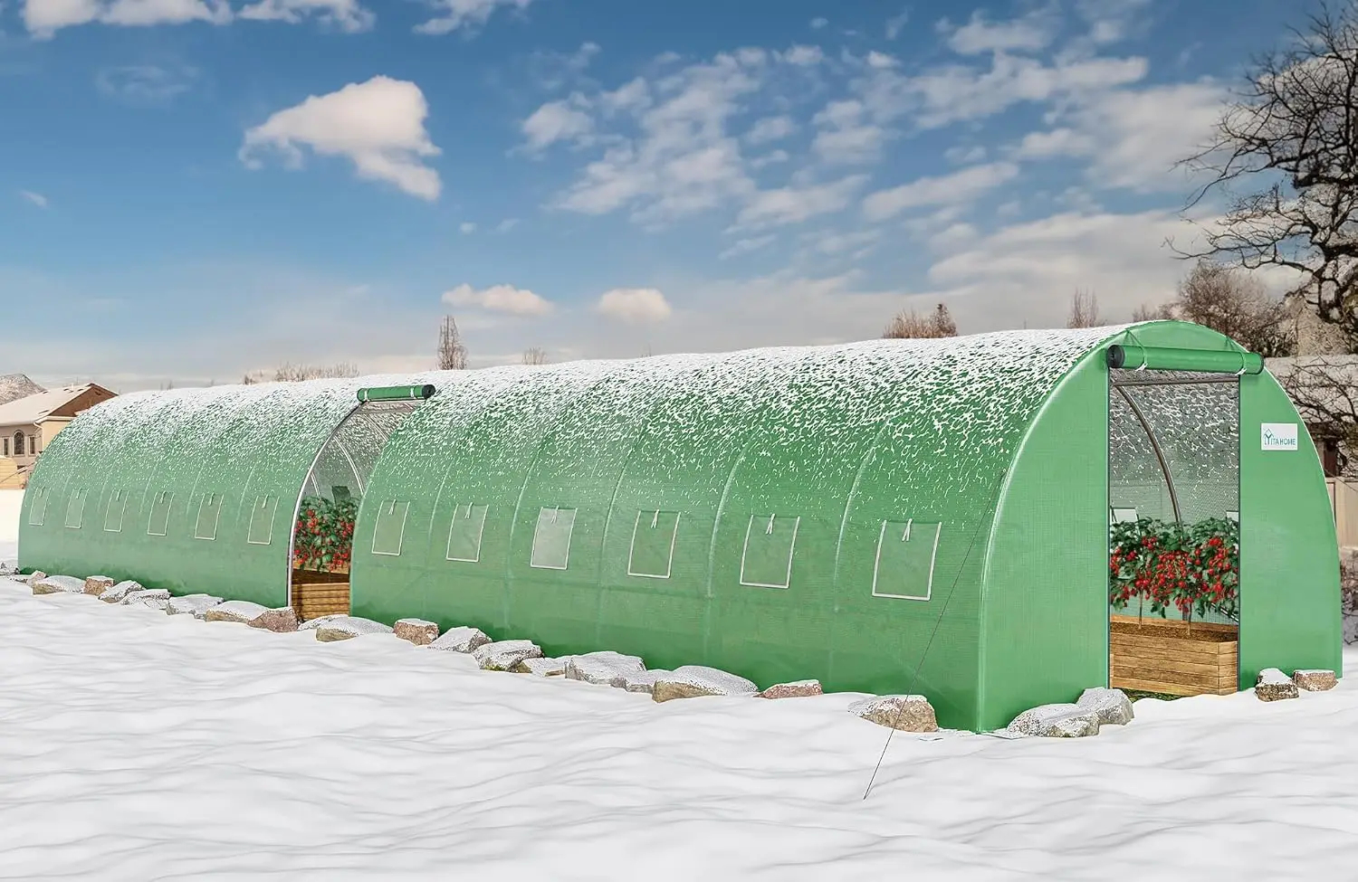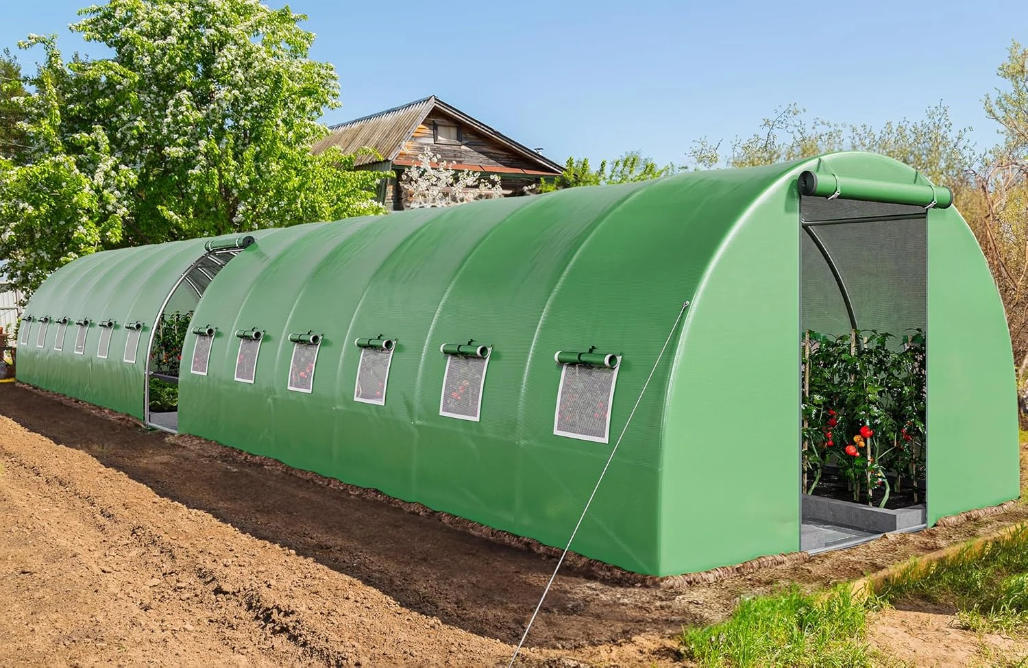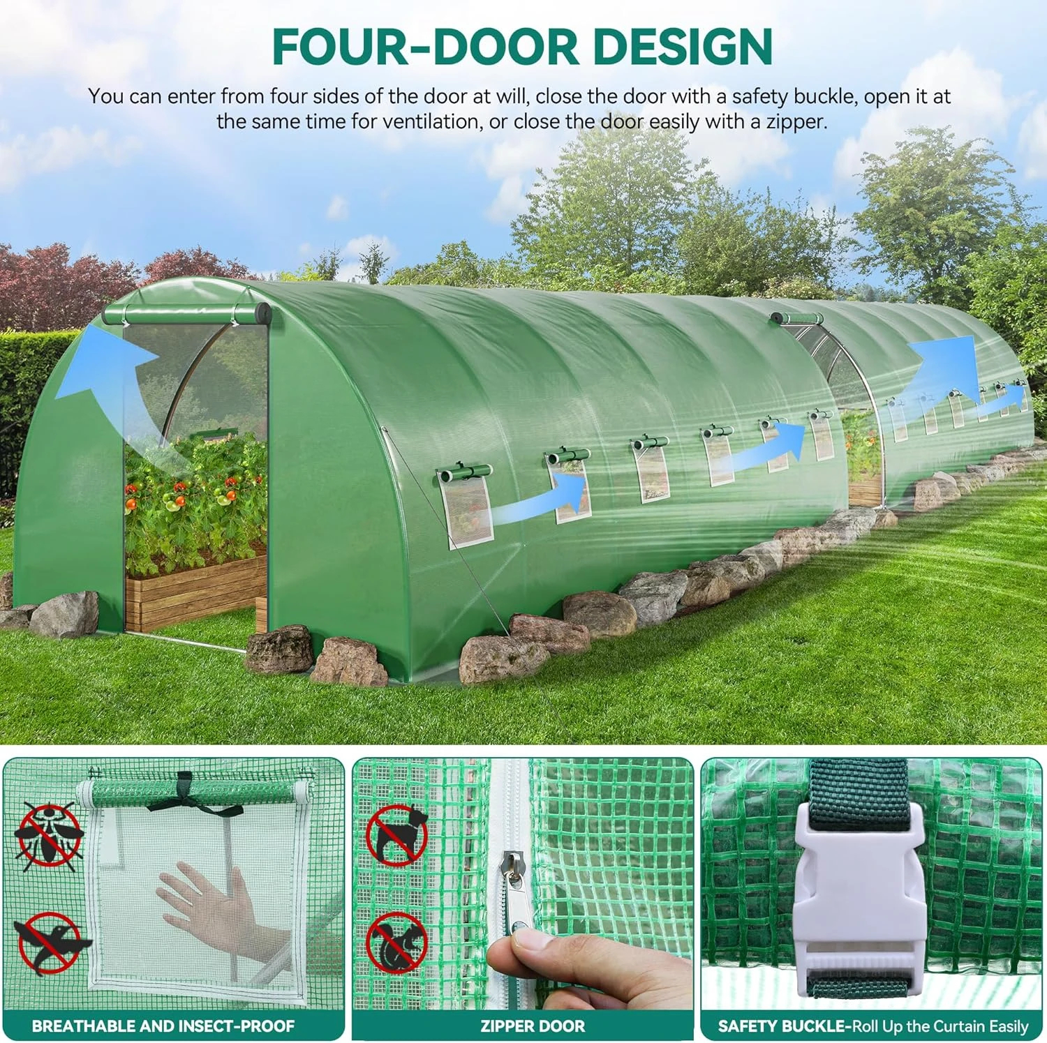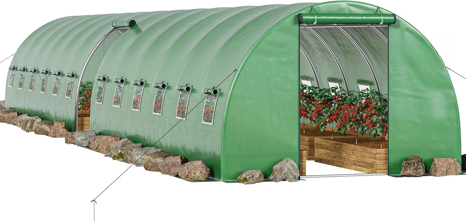 44x10x7ft Greenhouse Extra Large Heavy Duty 4 Zipper Doors Outdoor Greenhouses 24 Windows Walk in Tunnel Green House Plant