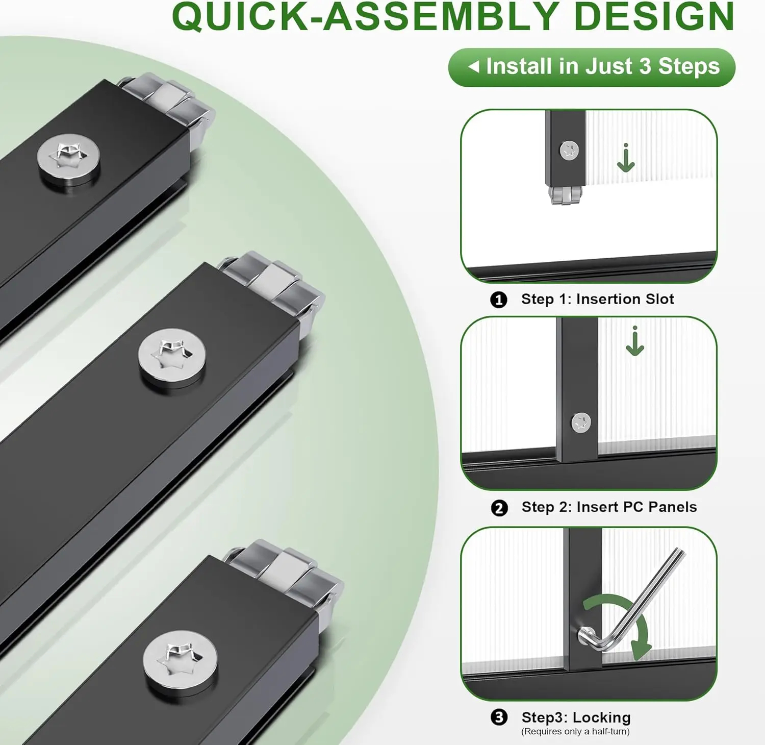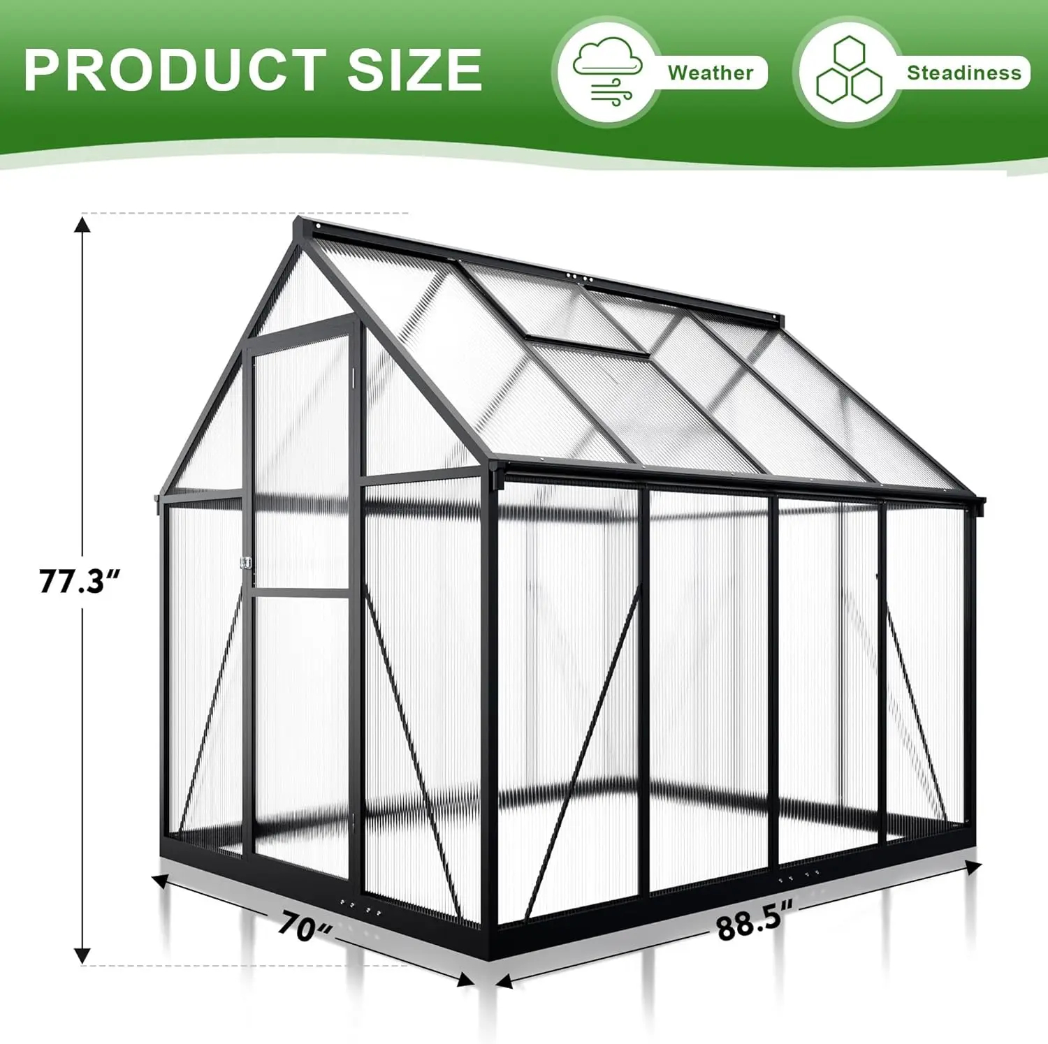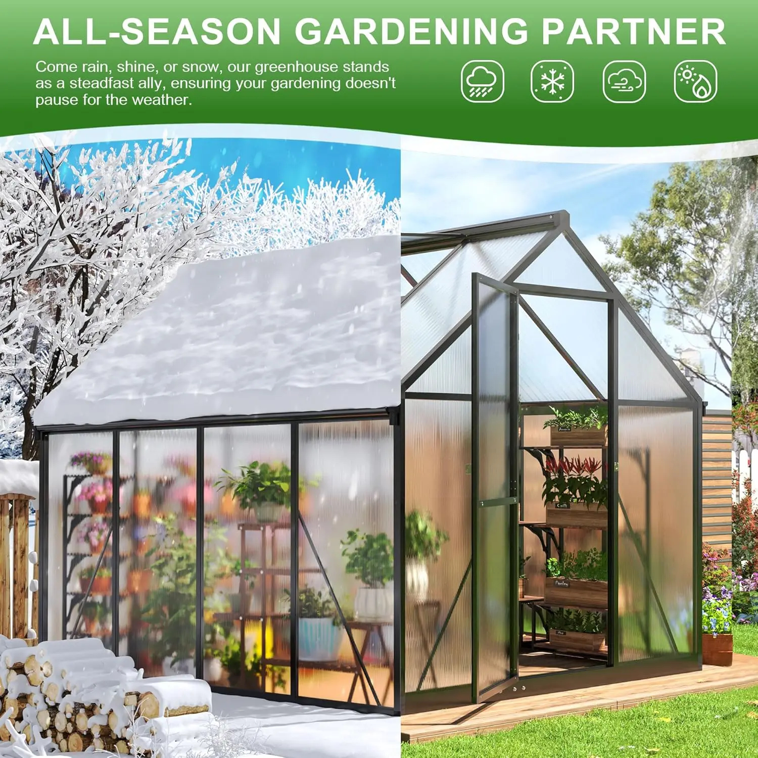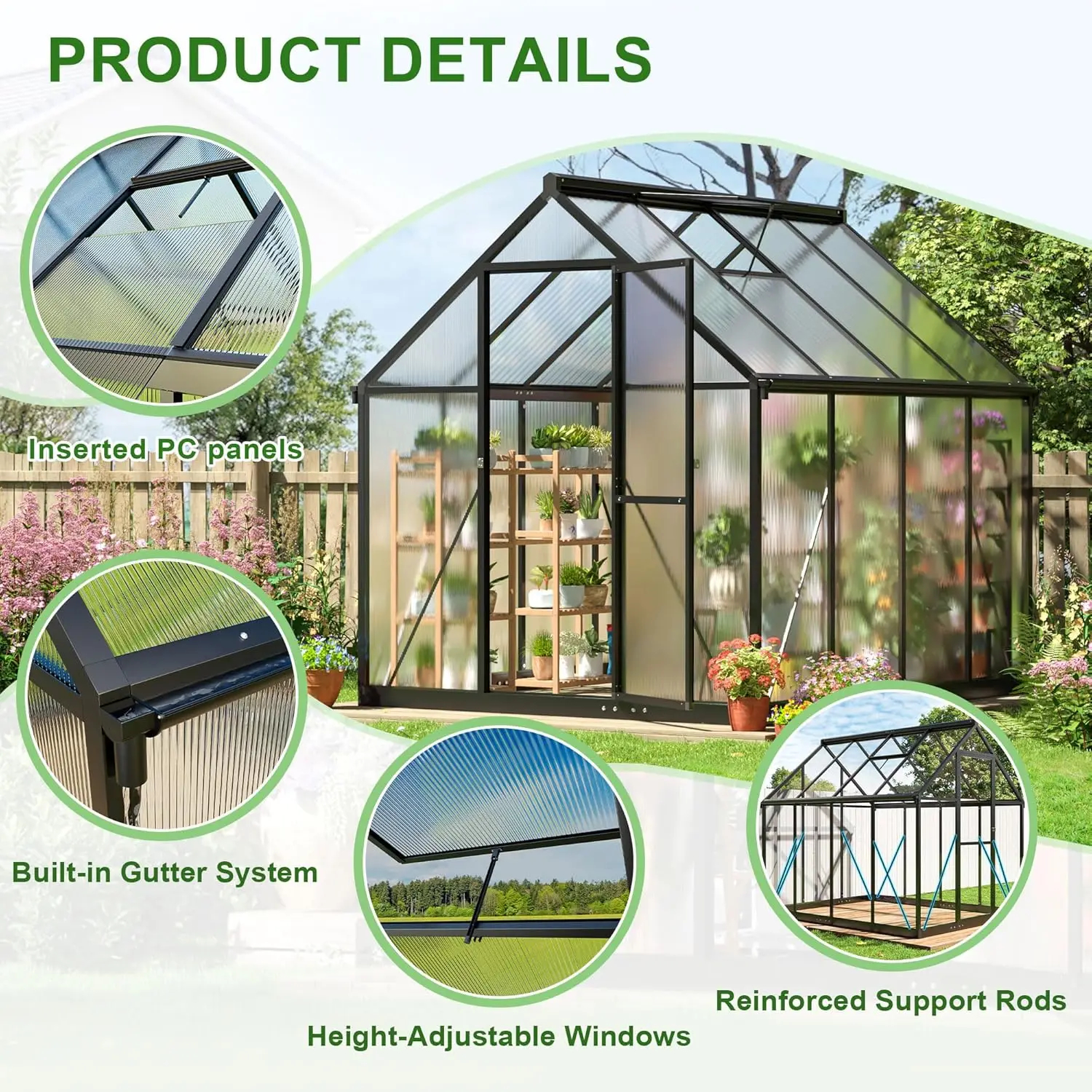 6×8 FT Greenhouse, Quick Aluminum Assembly Structure Polycarbonate Greenhouse, Walk-in Greenhouses for Outdoors with Ventilated